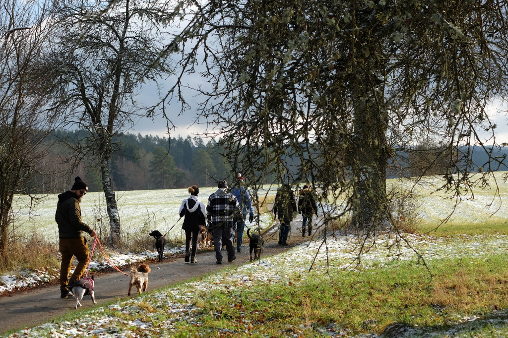 Am Sonntag trafen wir uns zu einem geführten Gruppenspaziergang in der malerischen Pegnitzau zwischen Ranna und Michelfeld. Bei dieser Gelegenheit wurden die Hunde an der Leine gehalten und einige Übungen eingebaut.