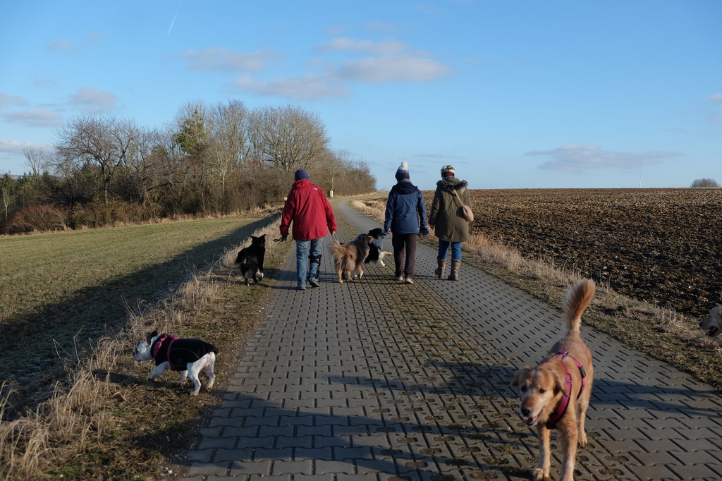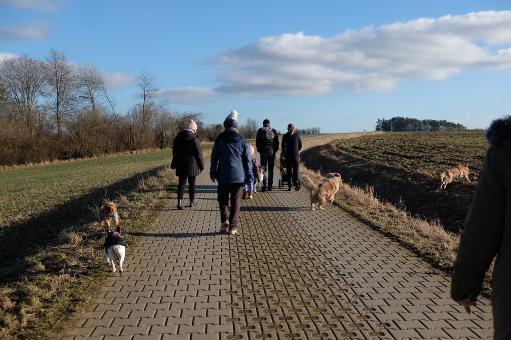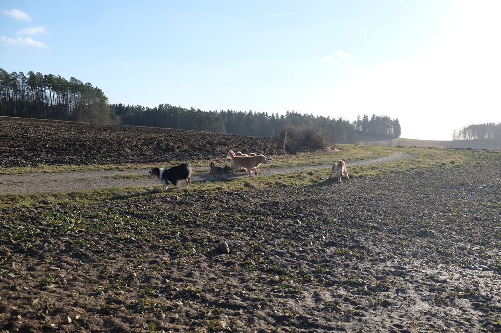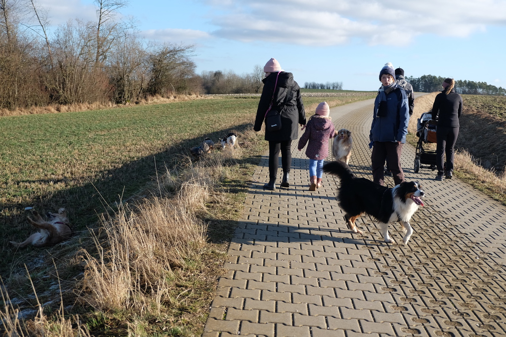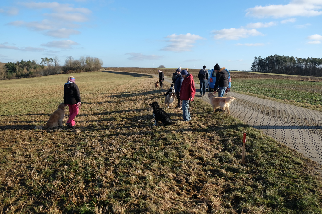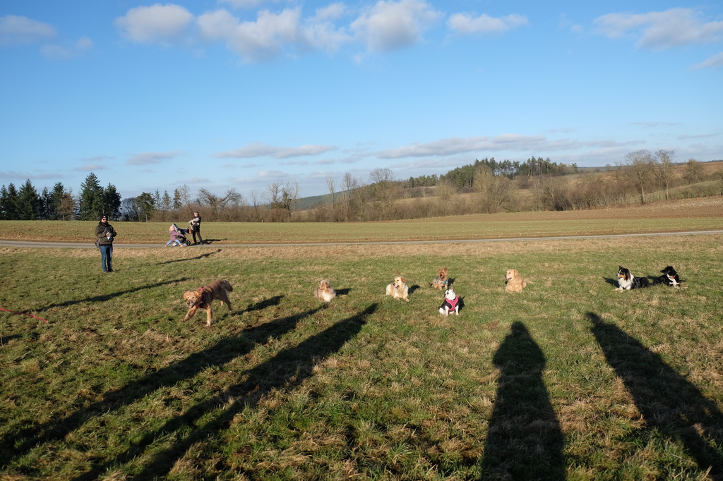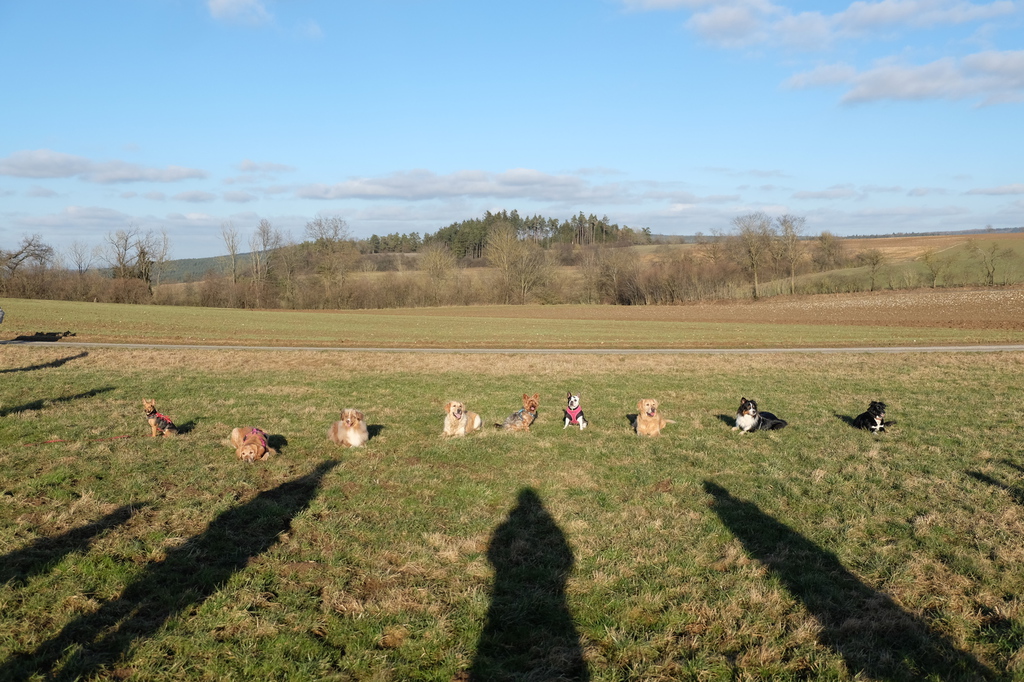 Am sonnigen Samstag gingen wir gemeinsam in der Nähe des Vereinsgeländes spazieren. Unter der Aufsicht der Trainerinnen Marion und Sabine konnten die Hunde abgeleint miteinander toben.