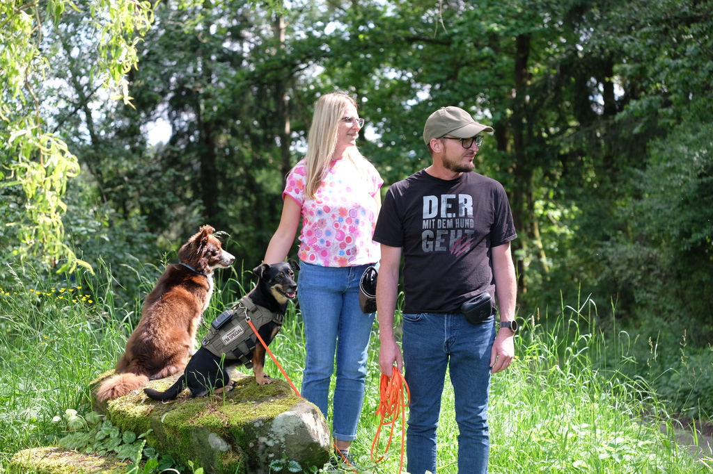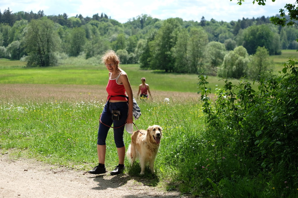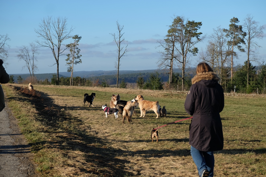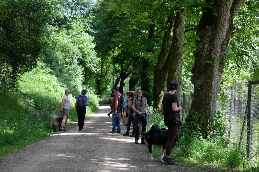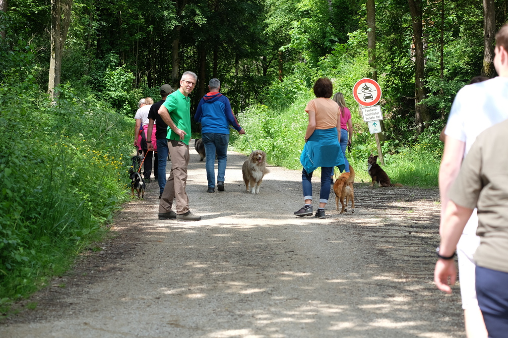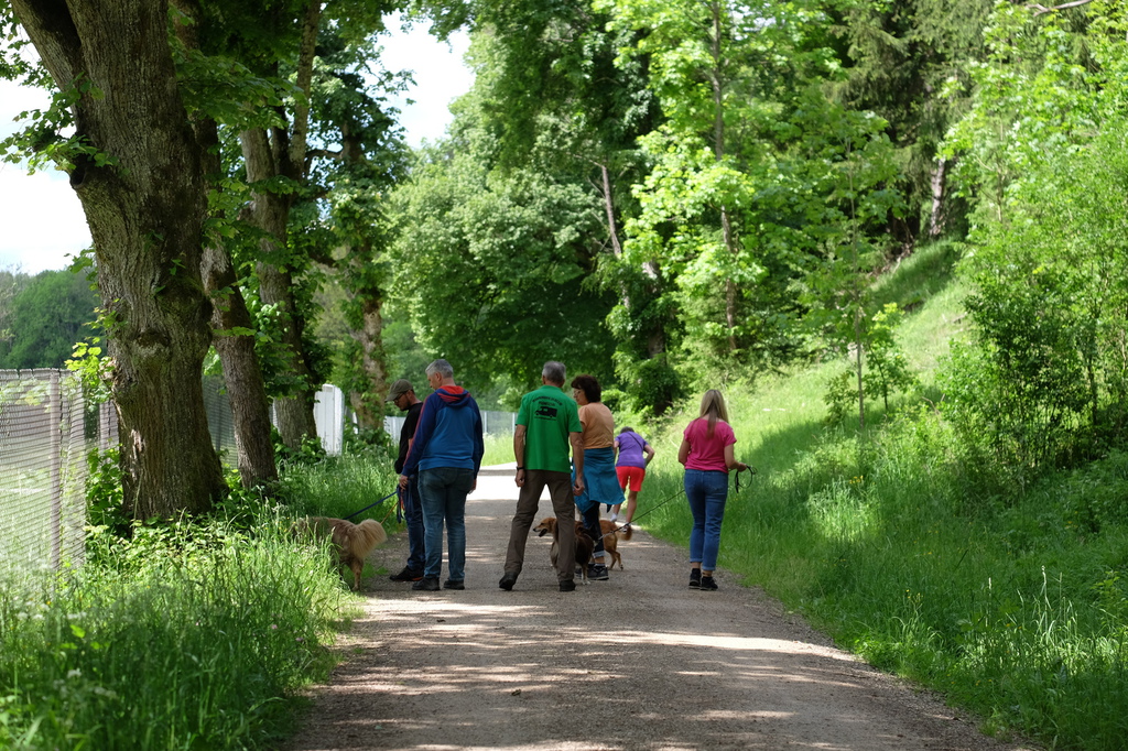 Am sommerlichen Sonntag trafen wir uns zu einem geführten Gruppenspaziergang in der malerischen Pegnitzau zwischen Ranna und Michelfeld. Insgesamt waren 15 Hunde aller Größen dabei. Unter der Aufsicht von Trainerin Marion wurden Gehorsamkeitsübungen eingebaut.